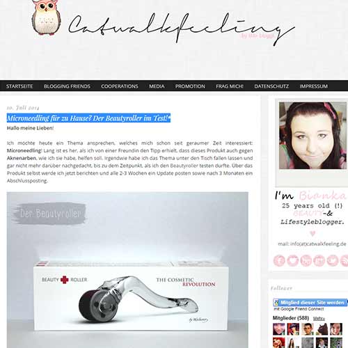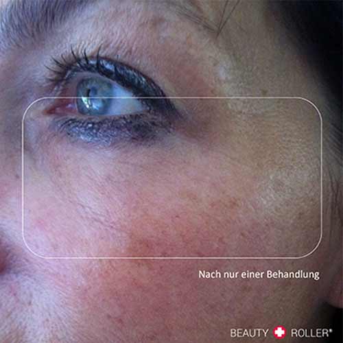 Durch die Behandlung sind bei mir die Mitesser auf der Nase und auf dem Jochbein weniger geworden. Auch haben sich die Poren verfeinert und die Falten sind flacher geworden. Die Haut ist insgesamt viel glatter geworden und sieht frischer aus. Ganz herzlichen Dank für den Beauty Roller, der wird einen festen Platz in meinem Leben finden.